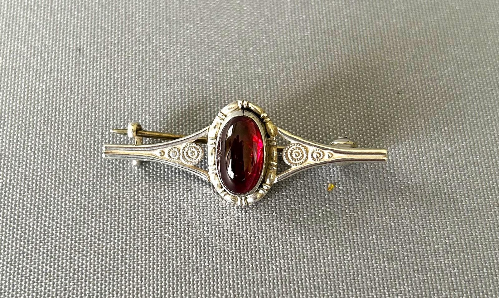 Jugendstil Silver & Garnet Bar Brooch (1 of 5)