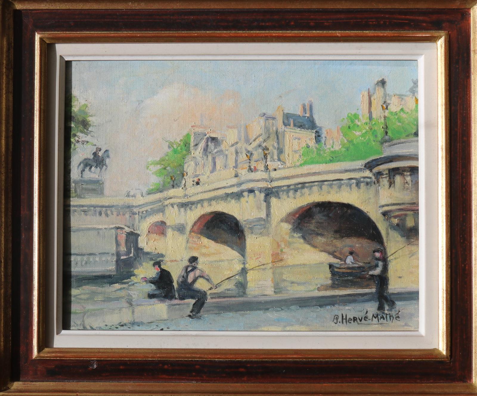 Jules Alfred Hervé-Mathé (1868-1953) Fishing on the Saine, Paris - Oil Painting