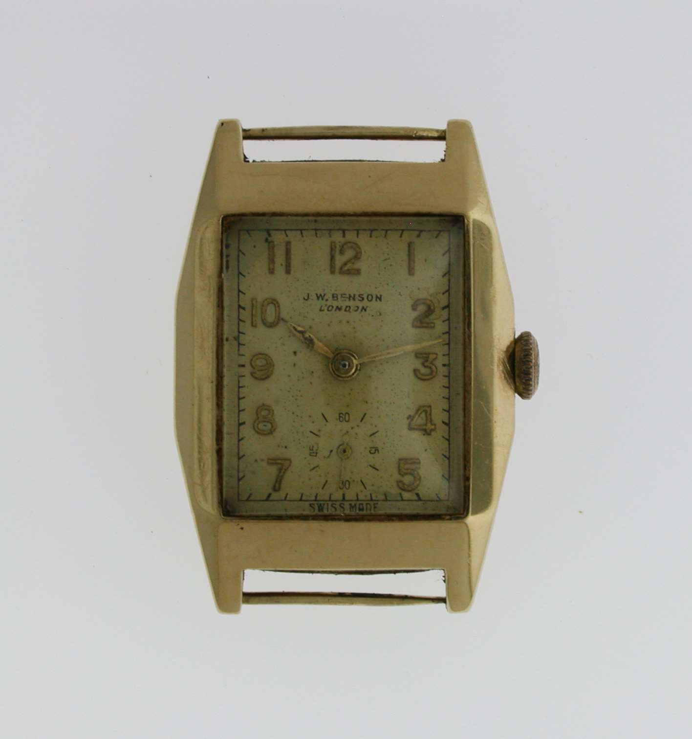JW Benson 9Kt Gold Wristwatch Ald Case Swiss Hallmarked for Birmingham 1950