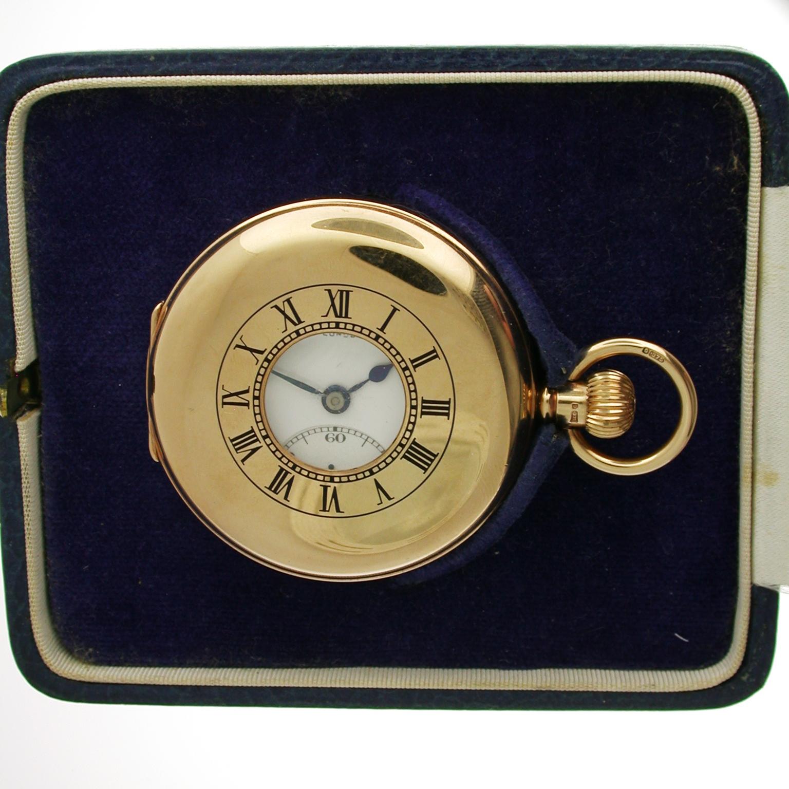J.W. Benson 9kt Yellow Gold Swiss Made Half Hunter Pocket Watch - Birmingham 1929