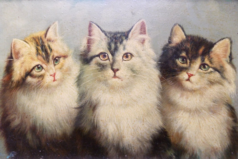 Karl Reichert Oil on Board. Three Kittens. Karl / Carl 'J Hartung'