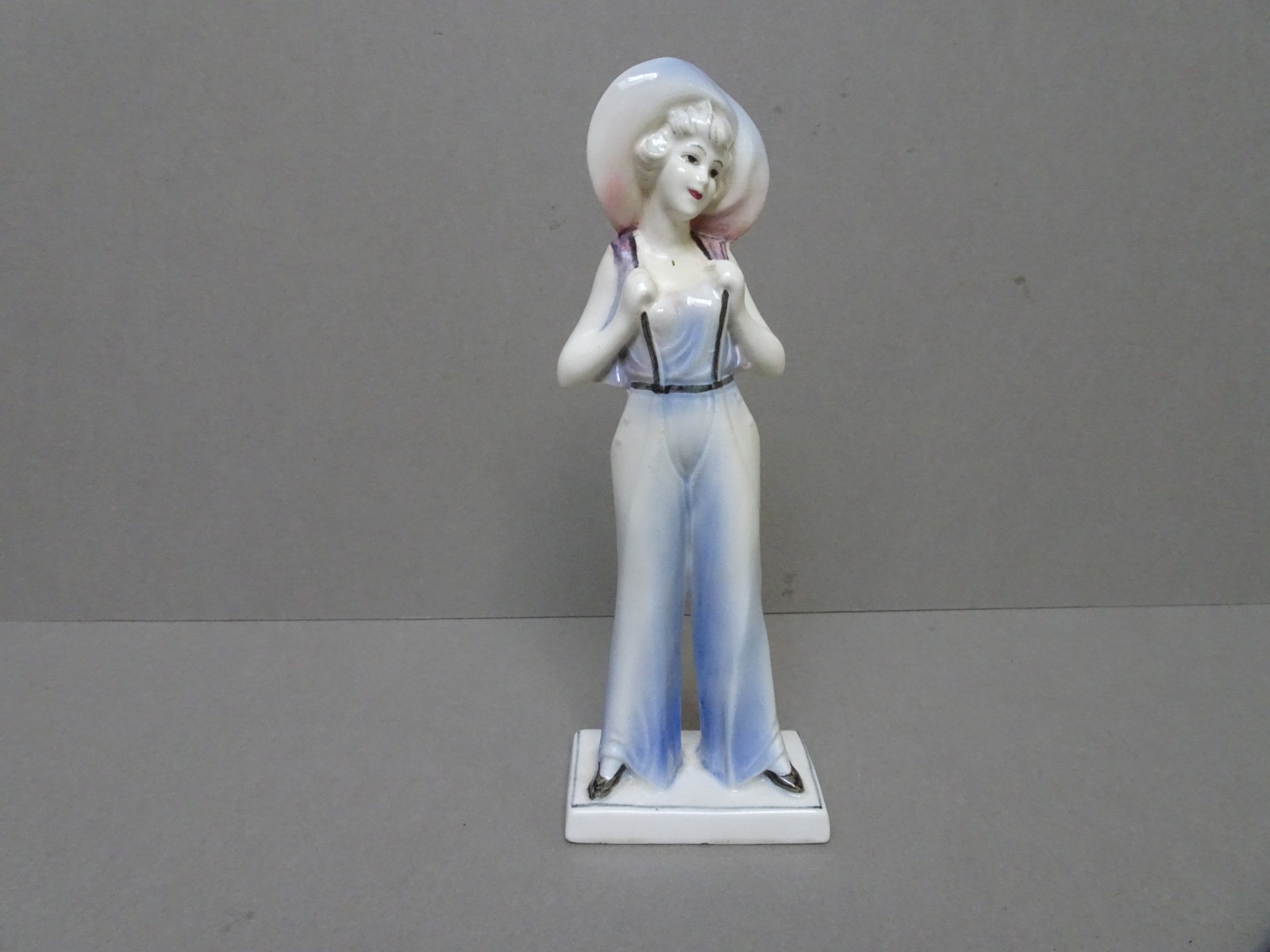 Katzhutte Figurine of a Girl in Dungarees. Art Deco
