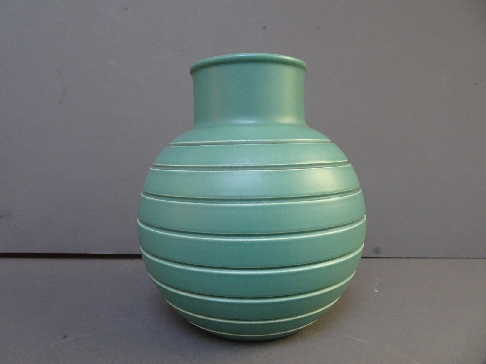 Keith Murray for Wedgwood, Green Spherical Vase. Art Deco