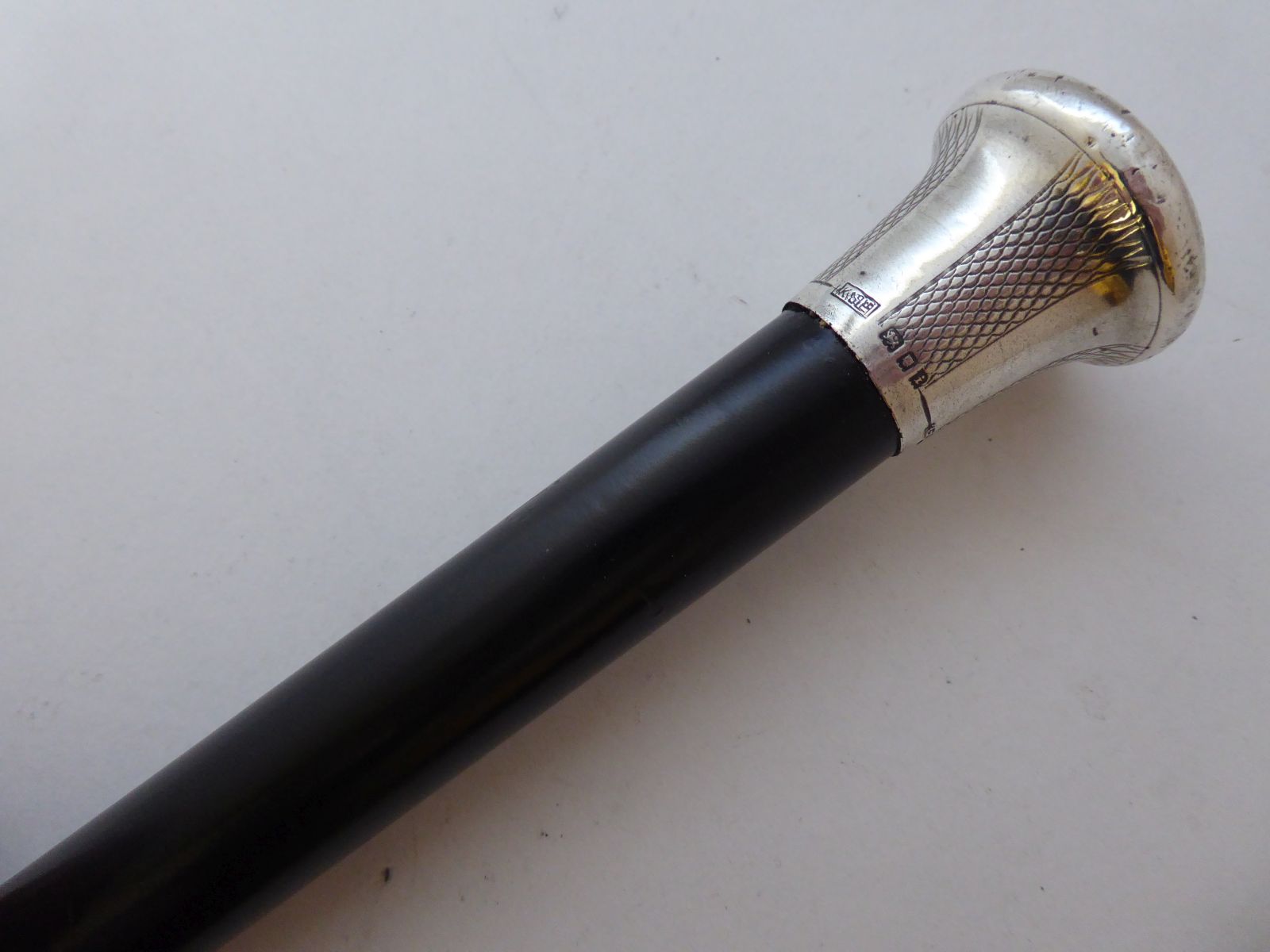 Kendal Walking Stick Cane 1924 Hallmarked Solid Silver Pommel Ebony Wood Shaft