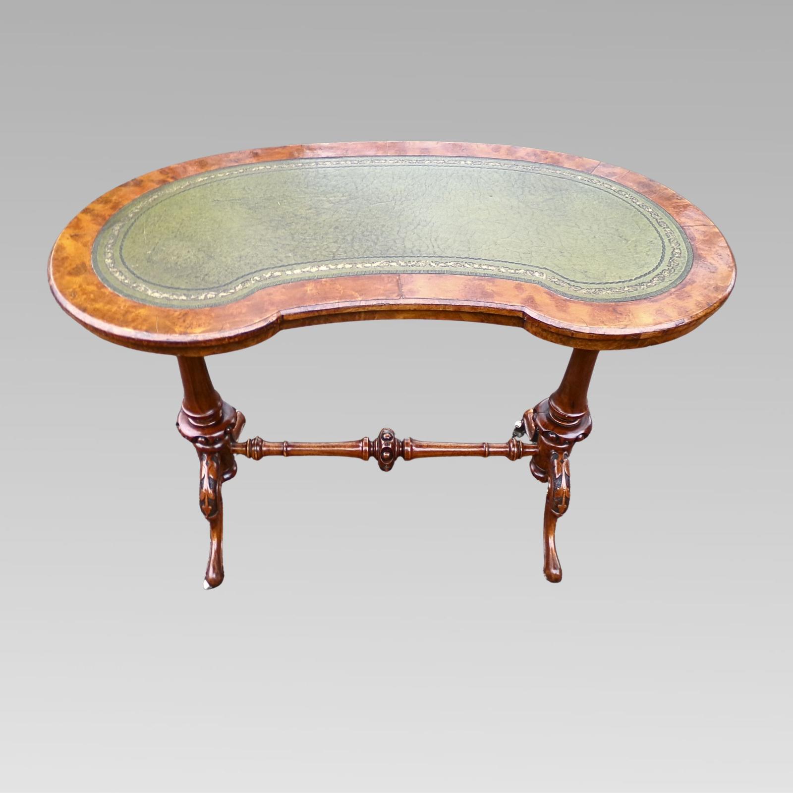 Fabulous Antique Victorian Walnut Kidney Writing Table Desk with Leather Inlay