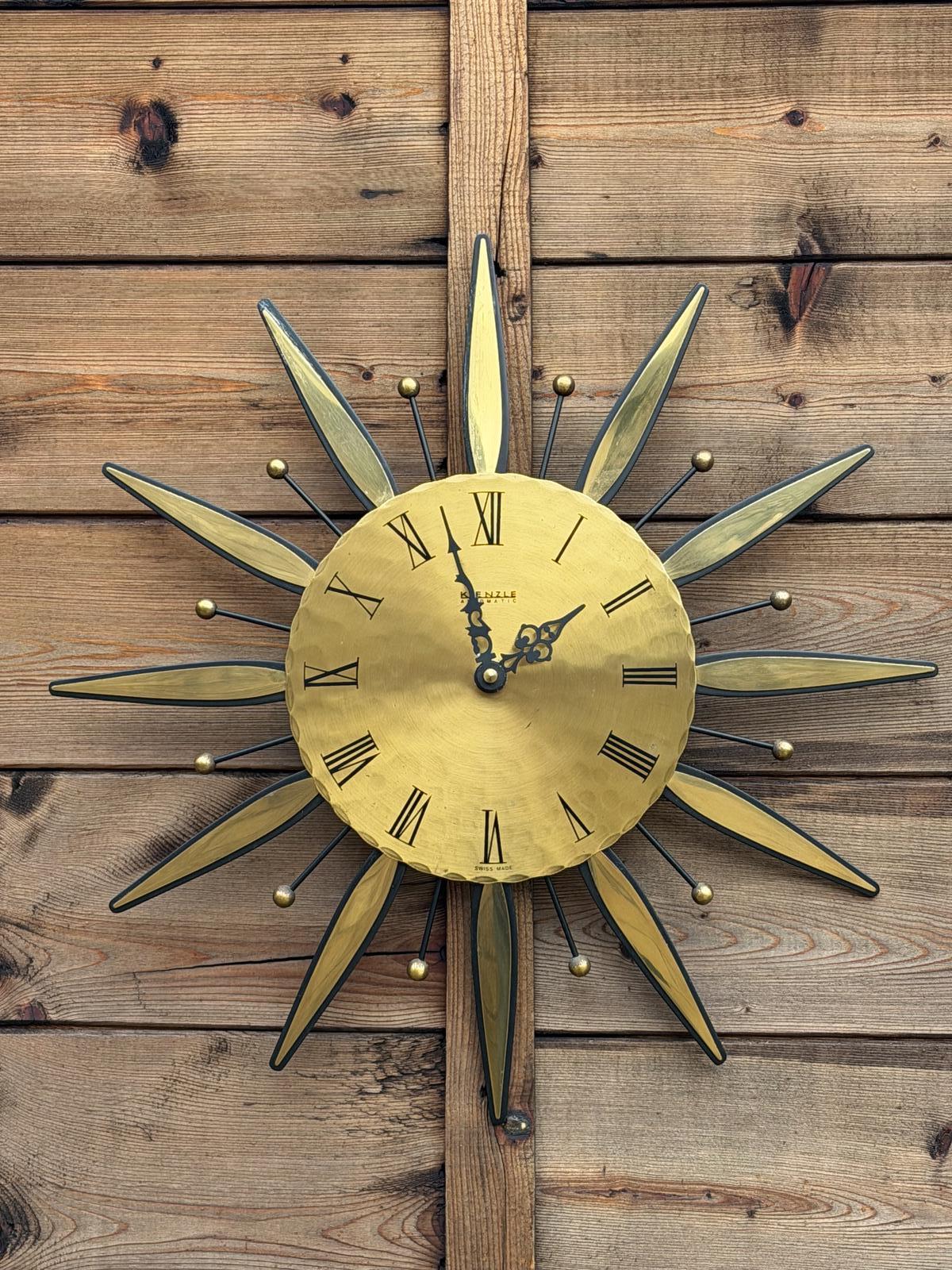 This is a Sunburst vintage wall clock, Swiss made for the German manufacturer Kienzle.