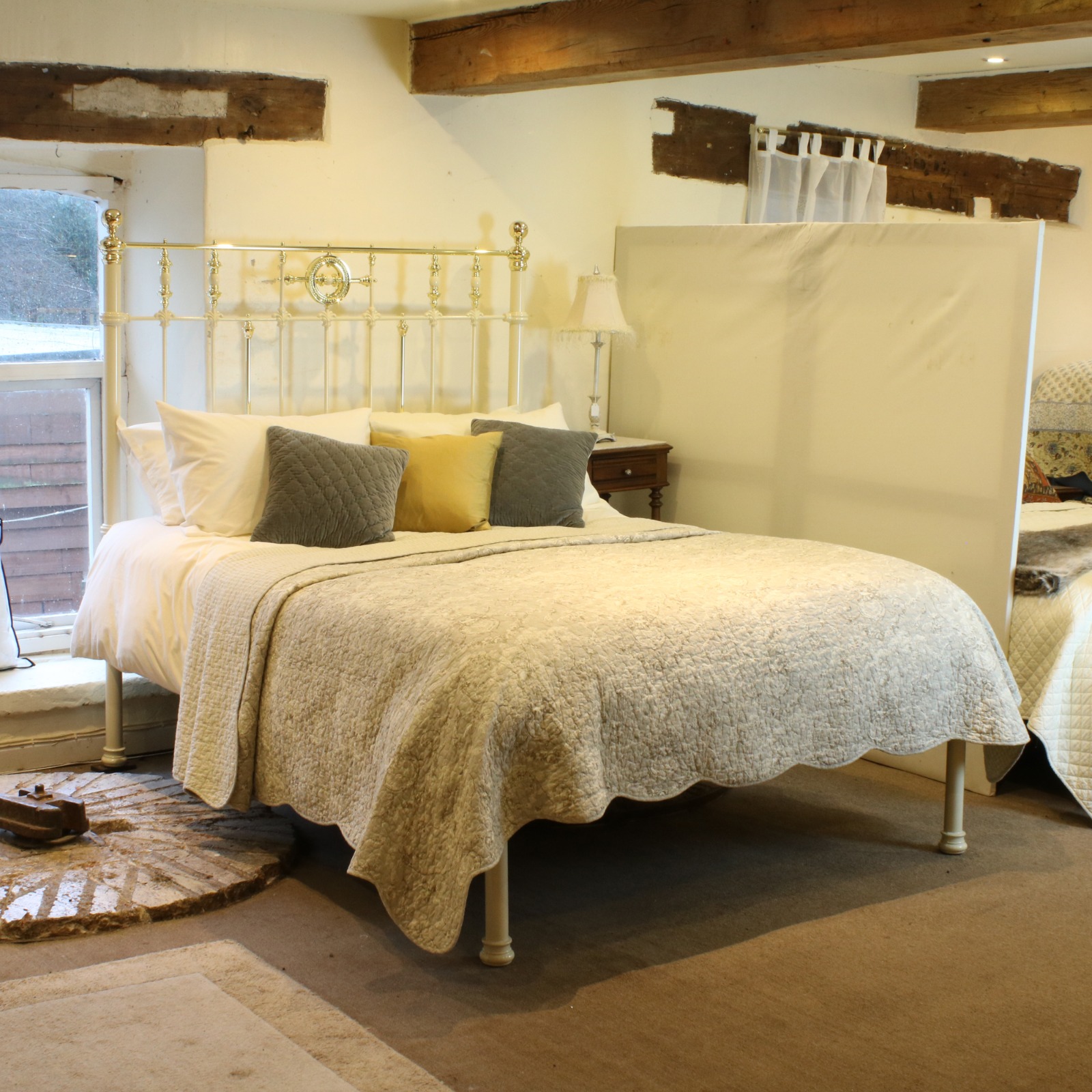 King Size Antique Bed in Cream c.1890