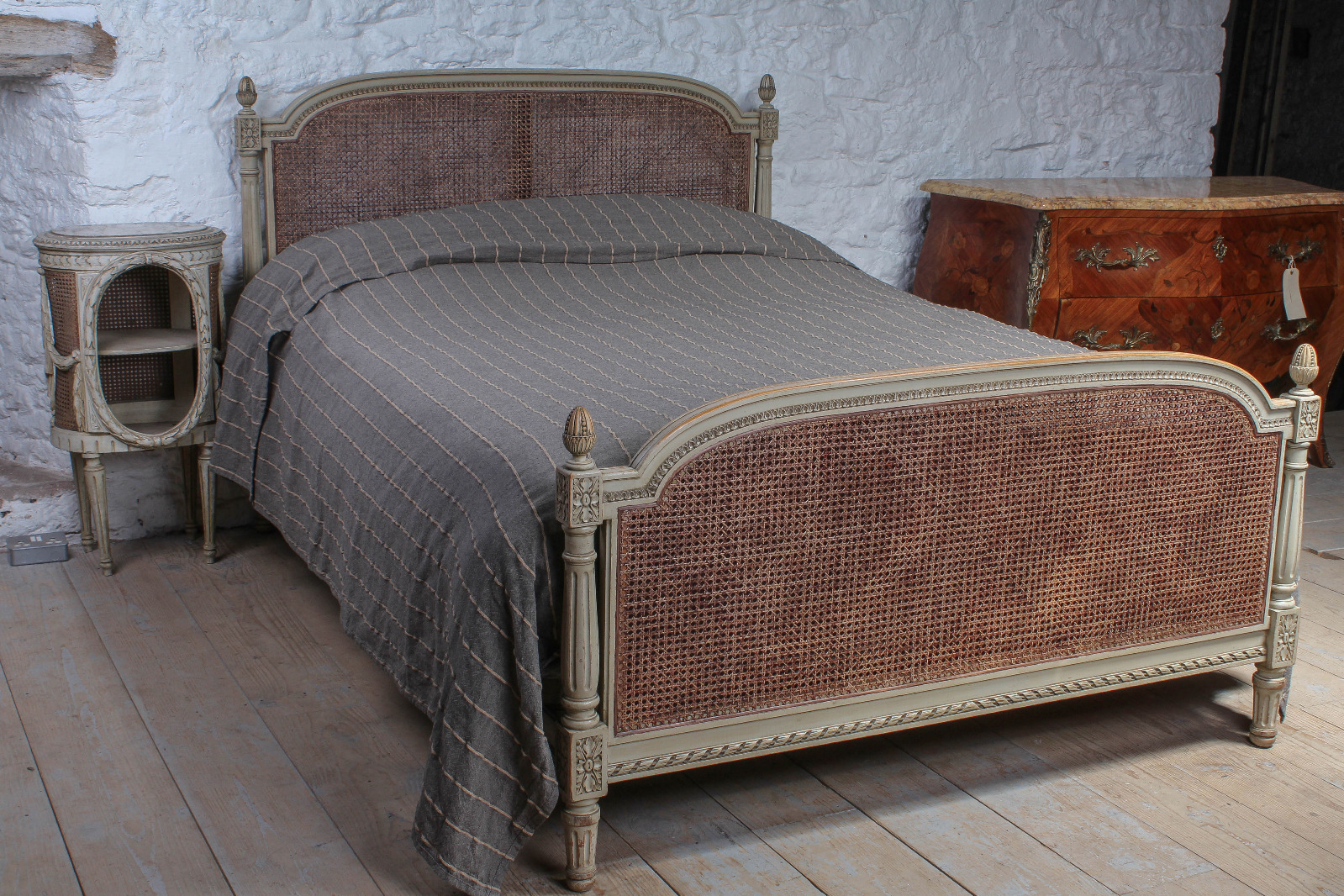 King Size Empire Style Eau De Nil Caned Bergere Bed