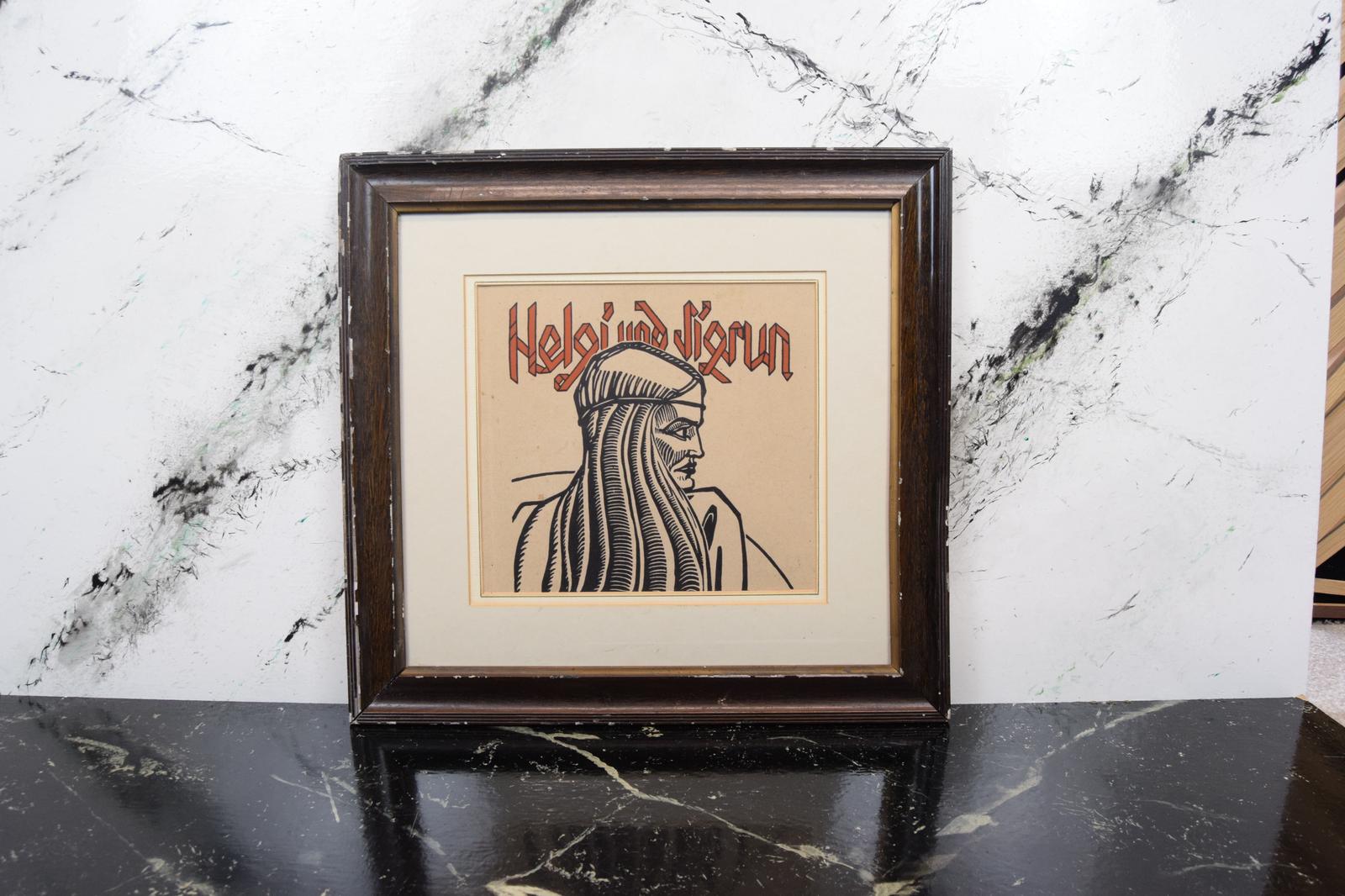 Klaus Wrage - Woodcut - Side Profile, Titled 'Helgi Und Sigrun'