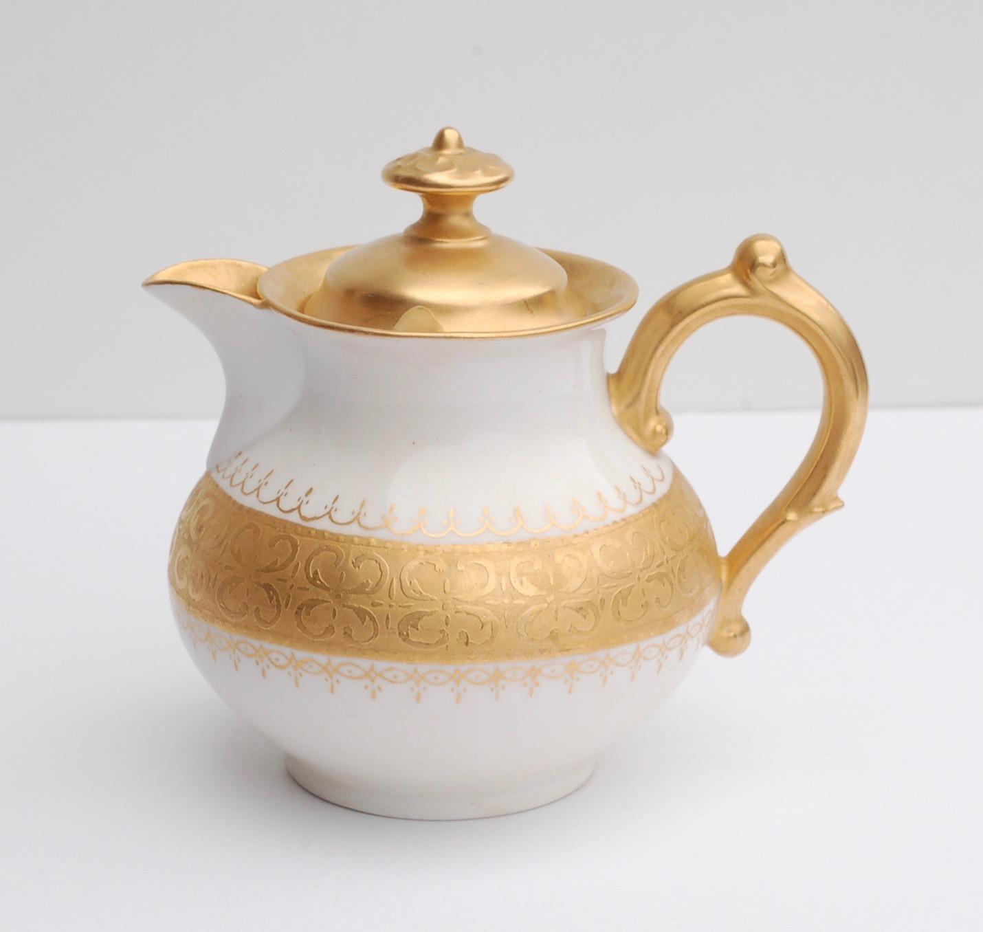Klingenberg Limoges 1890s Gold French Porcelain Covered Jug