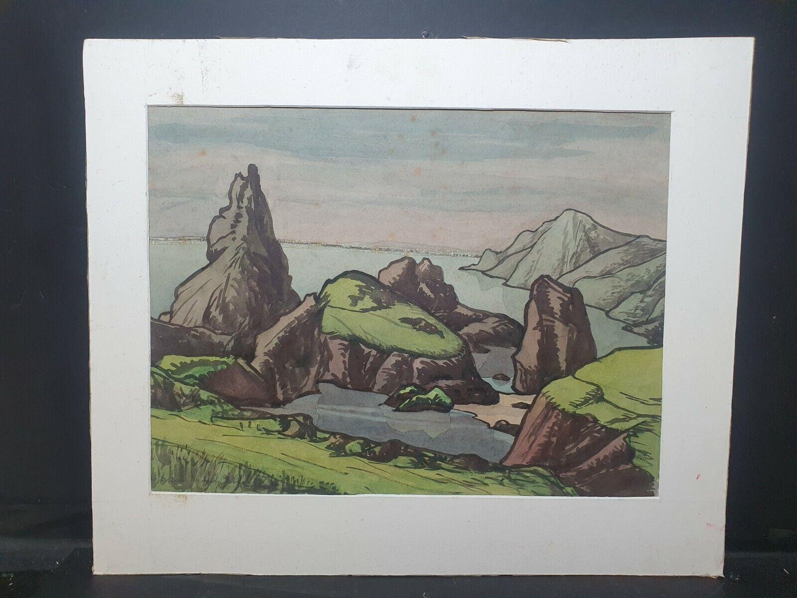 Kynance Cove st Ives Cornwall 1960s Watercolour Landscape