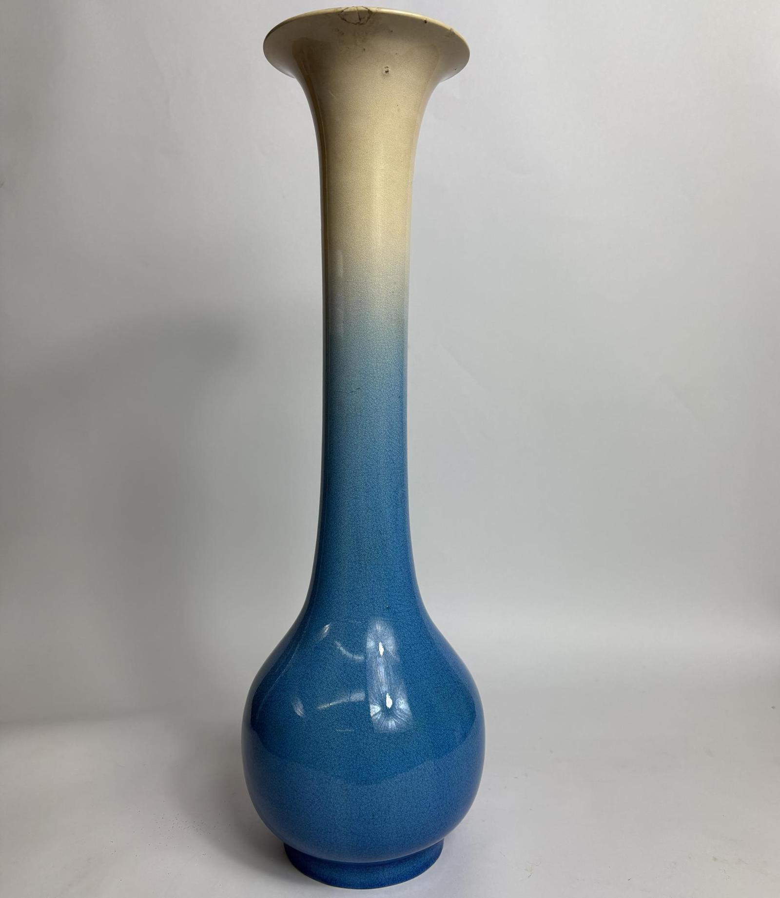 Kyoto Ware Bottle Vase – Blue to Cream Ombré Glaze - Japanese Meiji Period