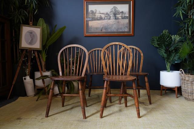 L. Victorian 4 Hoop Back Windsor Farmhouse Elm Dining Chairs