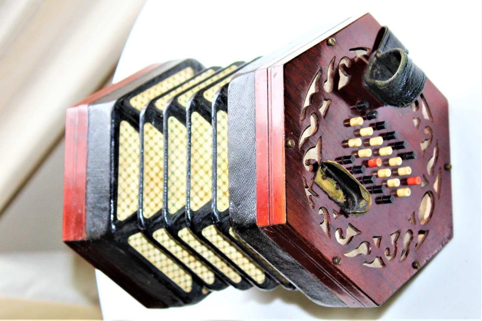 Lachenal Mahogany concertina in the original carrier case which is in very good condition
