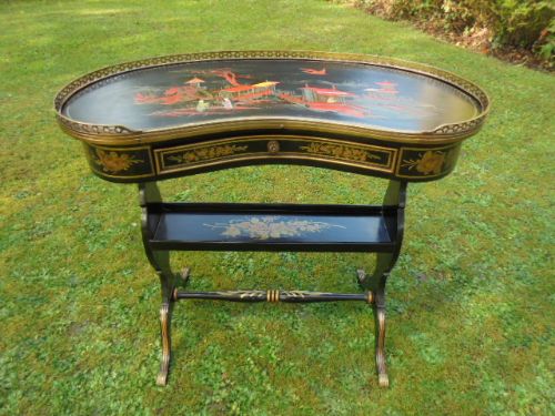 Lacquered Chinoiserie Decorated Kidney Shaped Table / Desk c.1910