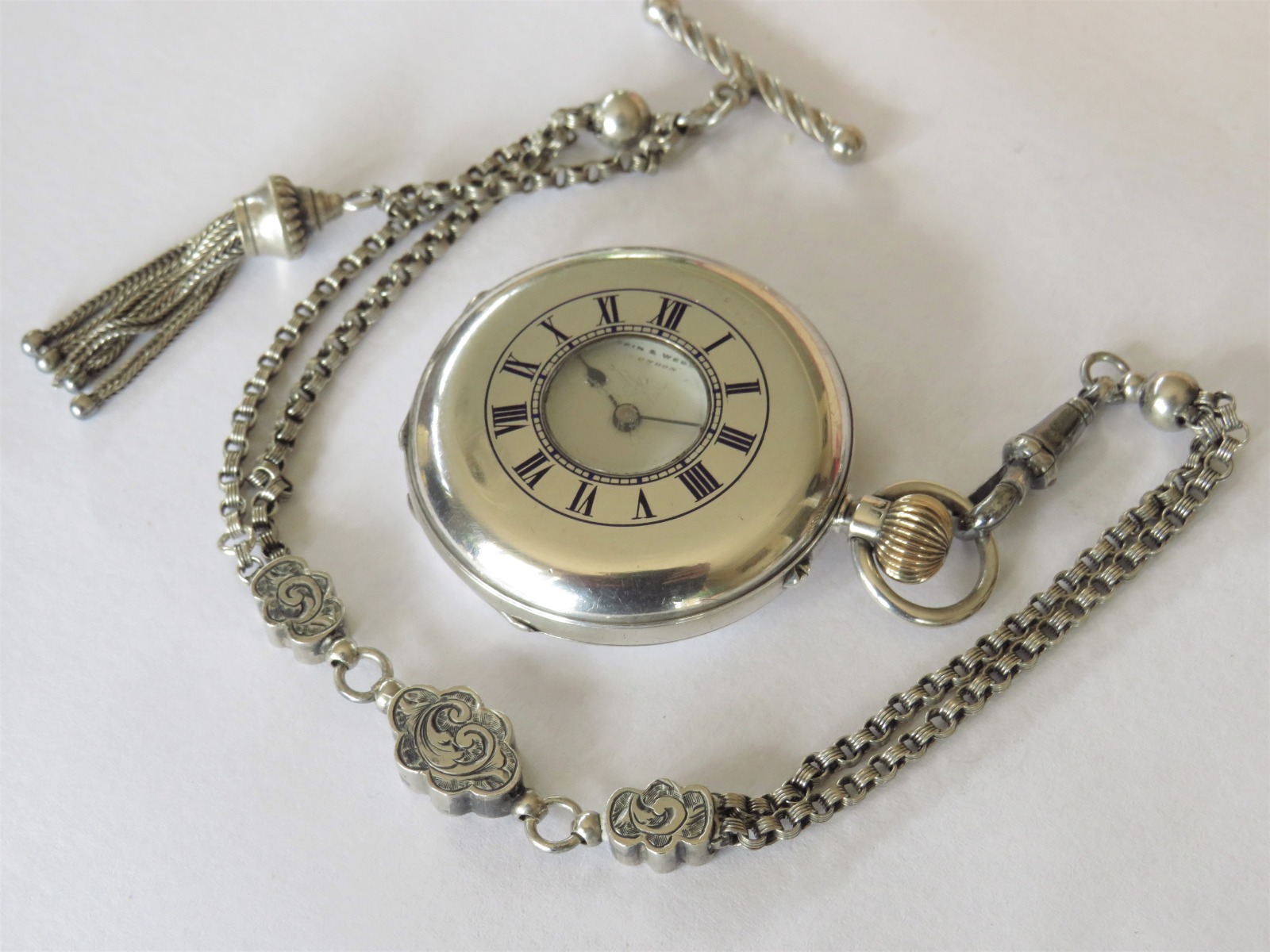 Ladies Silver Half Hunter Fob Watch, Mappin & Webb