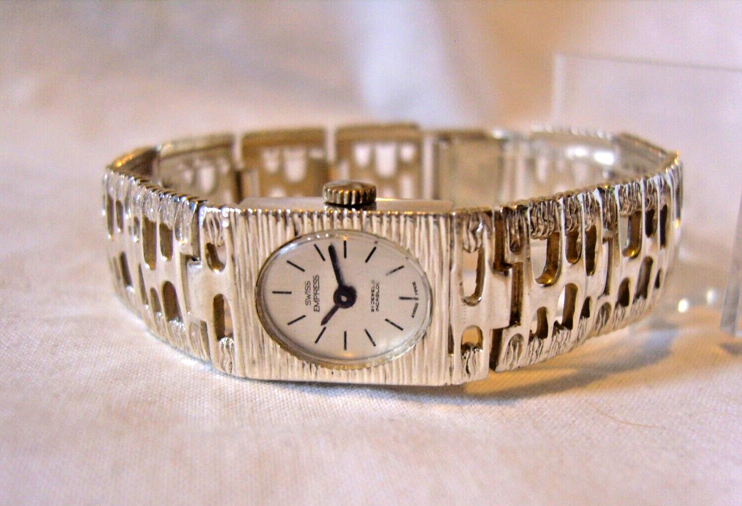 Ladies Swiss Empress Wrist Watch 1974 Sterling Silver Bracelet Strap 21 Jewel Movement