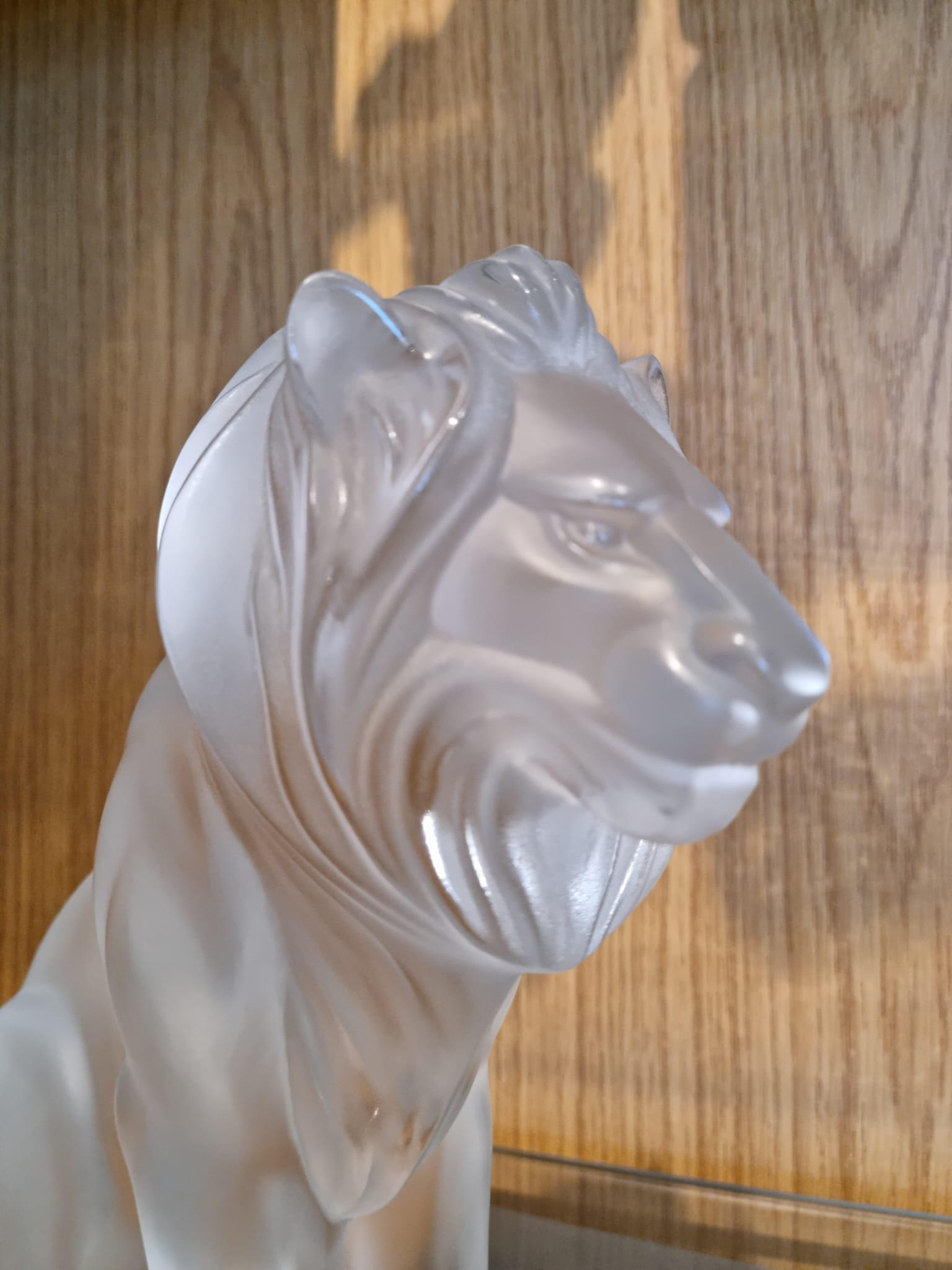 Lalique "Bamara" Seated Lion Sculpture with Original Label to Base