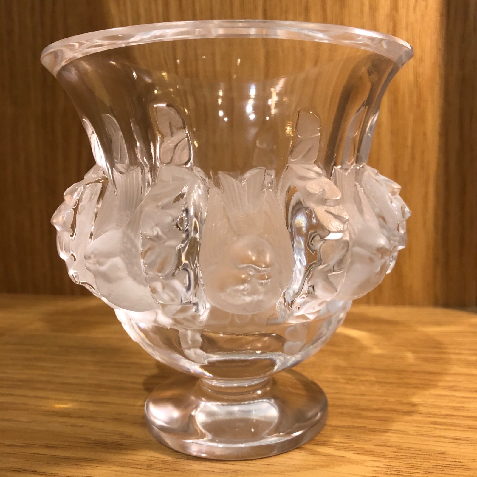 Lalique "Dampierre" Pattern Vase, Decorated with Birds & Foliage in Clear & Frosted Glass c.1960