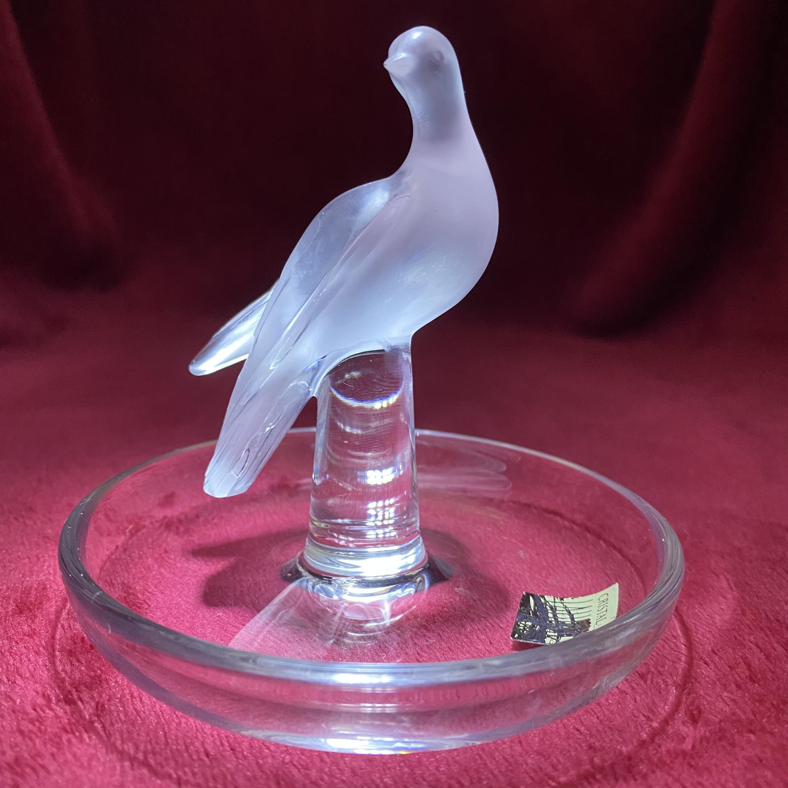 Lalique "Dove" Ring Dish in Clear & Frosted Glass with Original Label