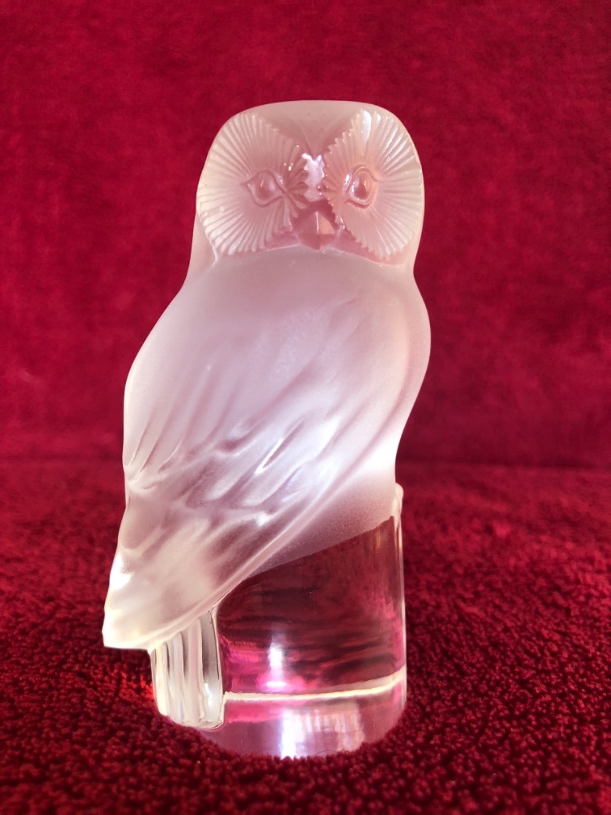 Lalique France Chouette Clear & Frosted Glass Owl Paperweight