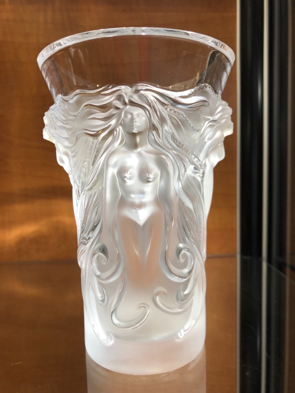 Lalique France 'Fantasia' Pattern Clear & Frosted Glass Vase with Original Label