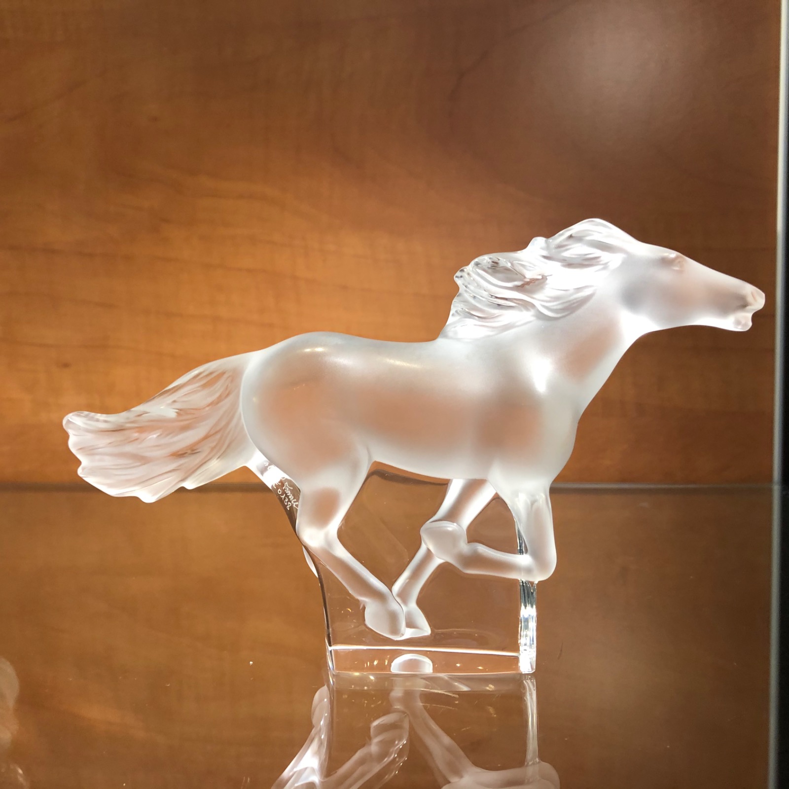 Lalique France 'Kazak' Galloping Horse Figurine Modelled in Clear & Frosted Glass