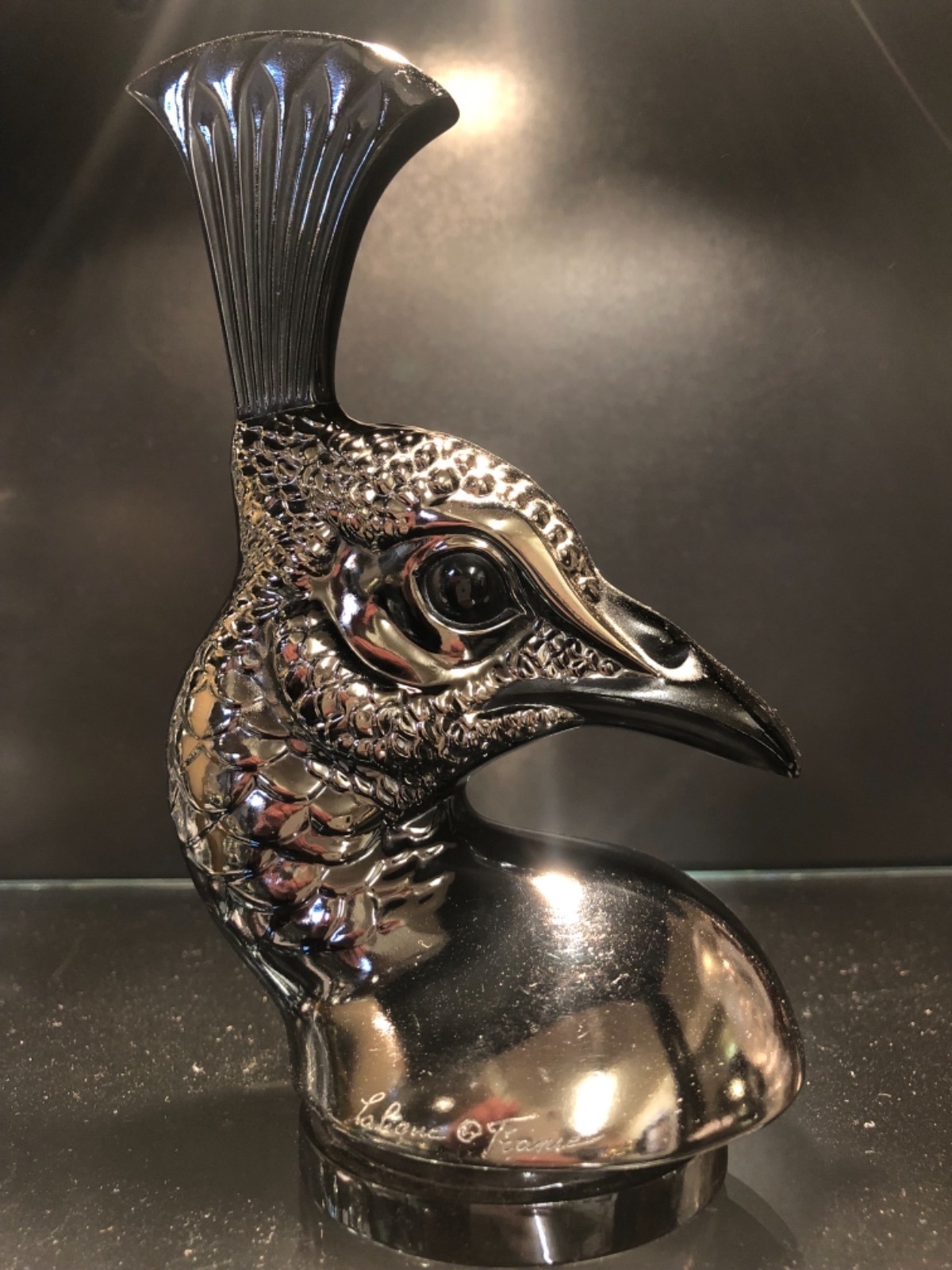 Lalique France 'Tete De Paon' Paperweight in RAre Black Lustre Finish