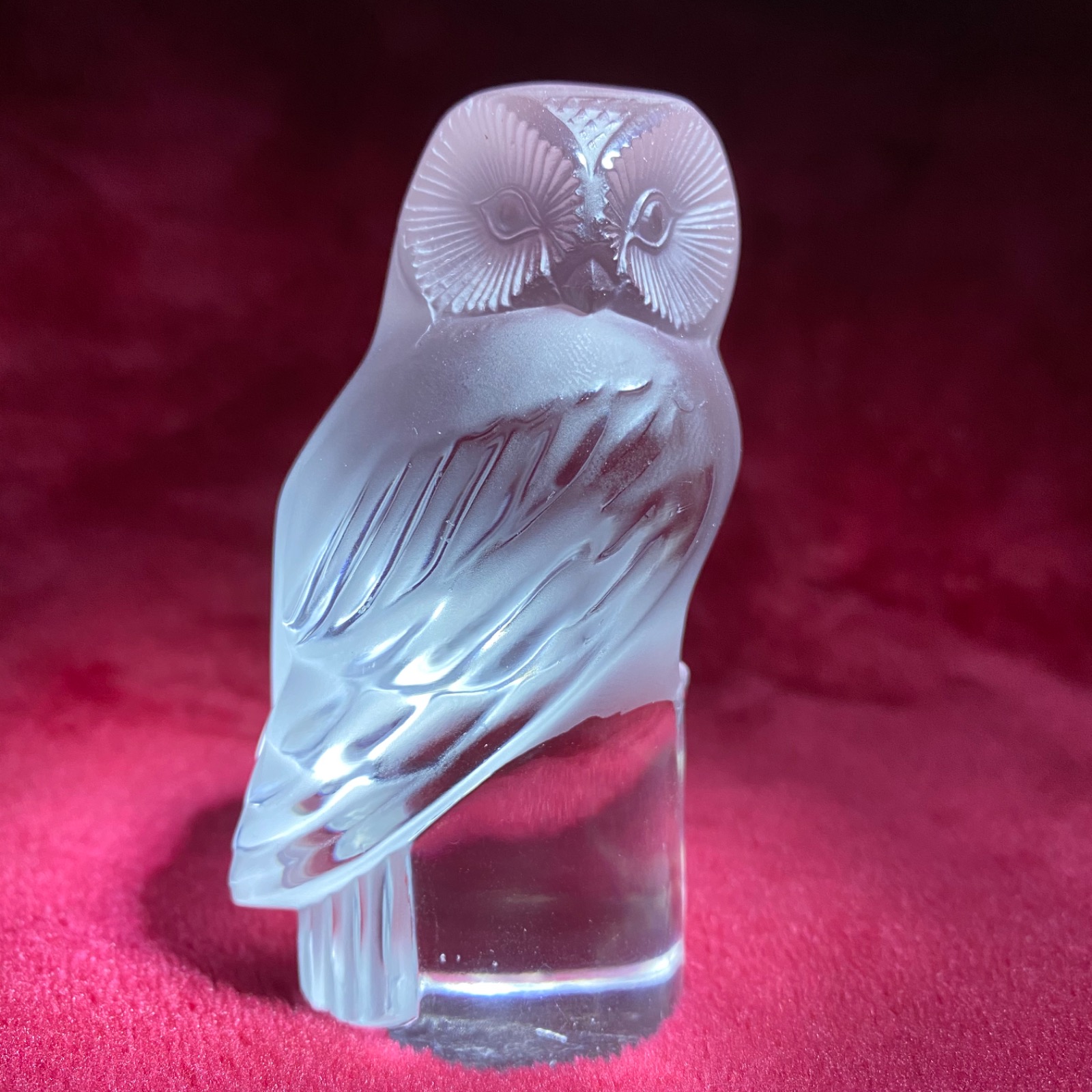 Lalique “Hulotte” Owl Paperweight in Clear & Frosted Glass c.1960