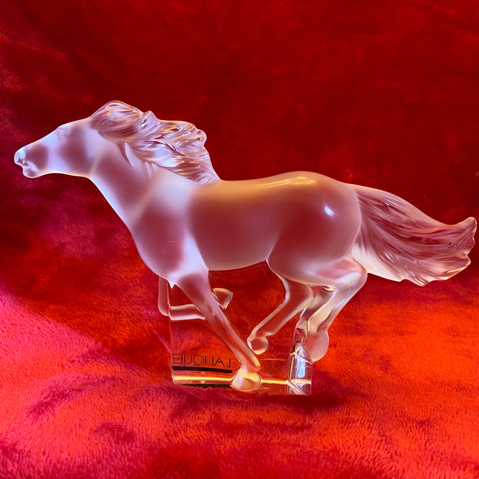 Lalique “Kazak” Galloping Horse Sculpture in Clear & Frosted with Original Label