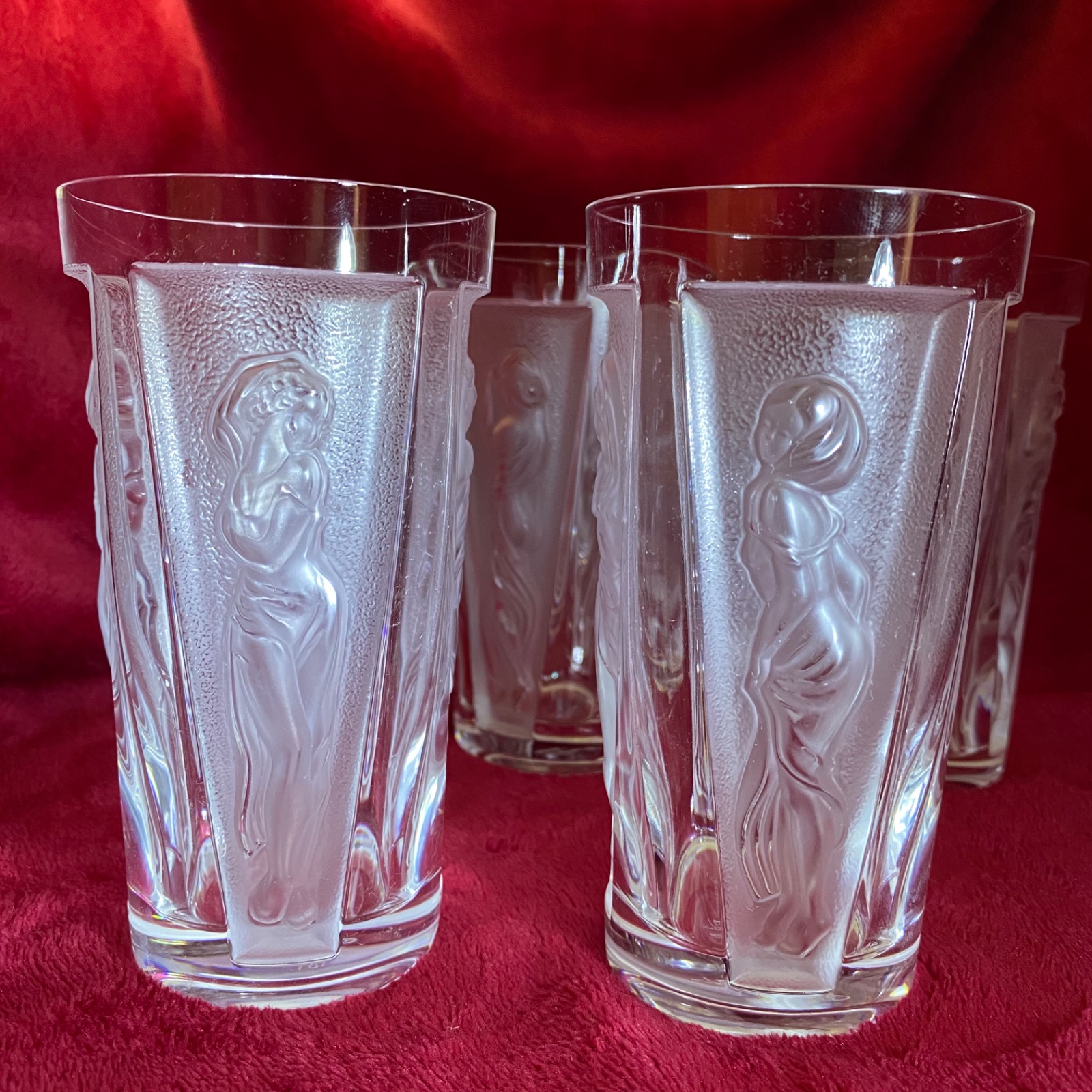 Lalique “Les Muses” Set of 8 High Ball Tumblers Decorated with Maidens in Stunning Condition