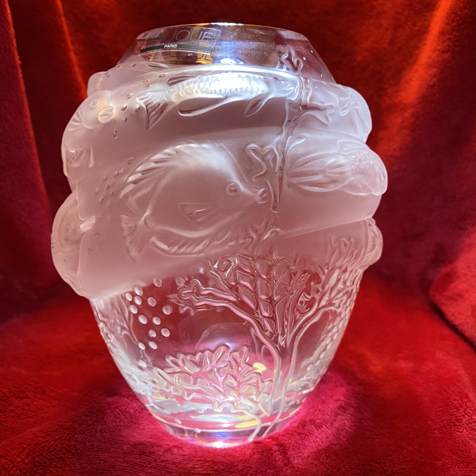 Lalique "Marine Et Tarpon" Marine life vase with original label and custom fitted box