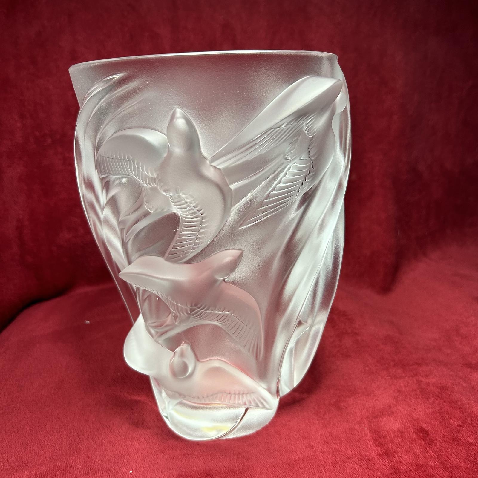 Lalique "Martinets" Swallows Pattern Vase in Pristine Condition