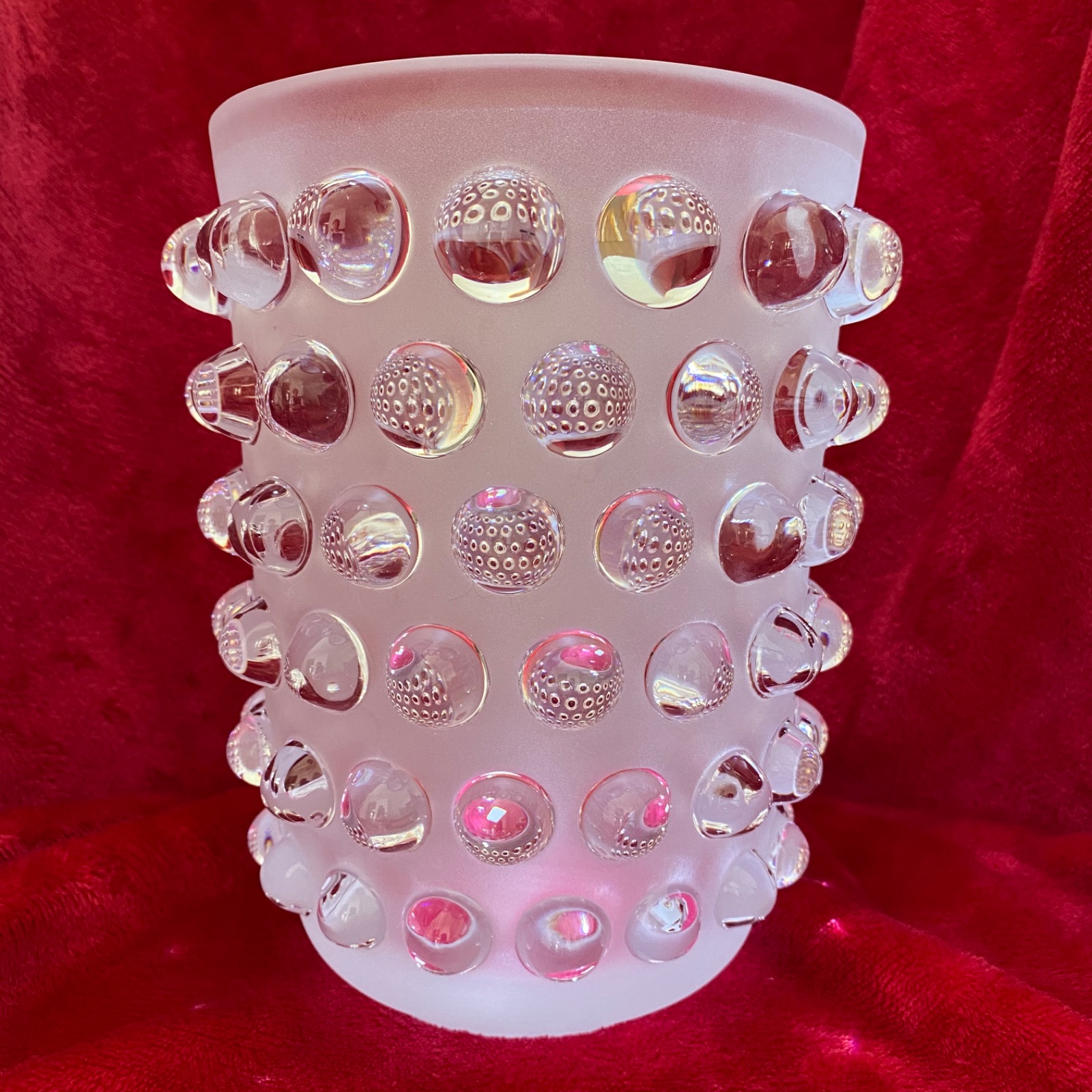 Lalique “Mossi” Vase in Clear and Frosted Glass with Original Label and Box
