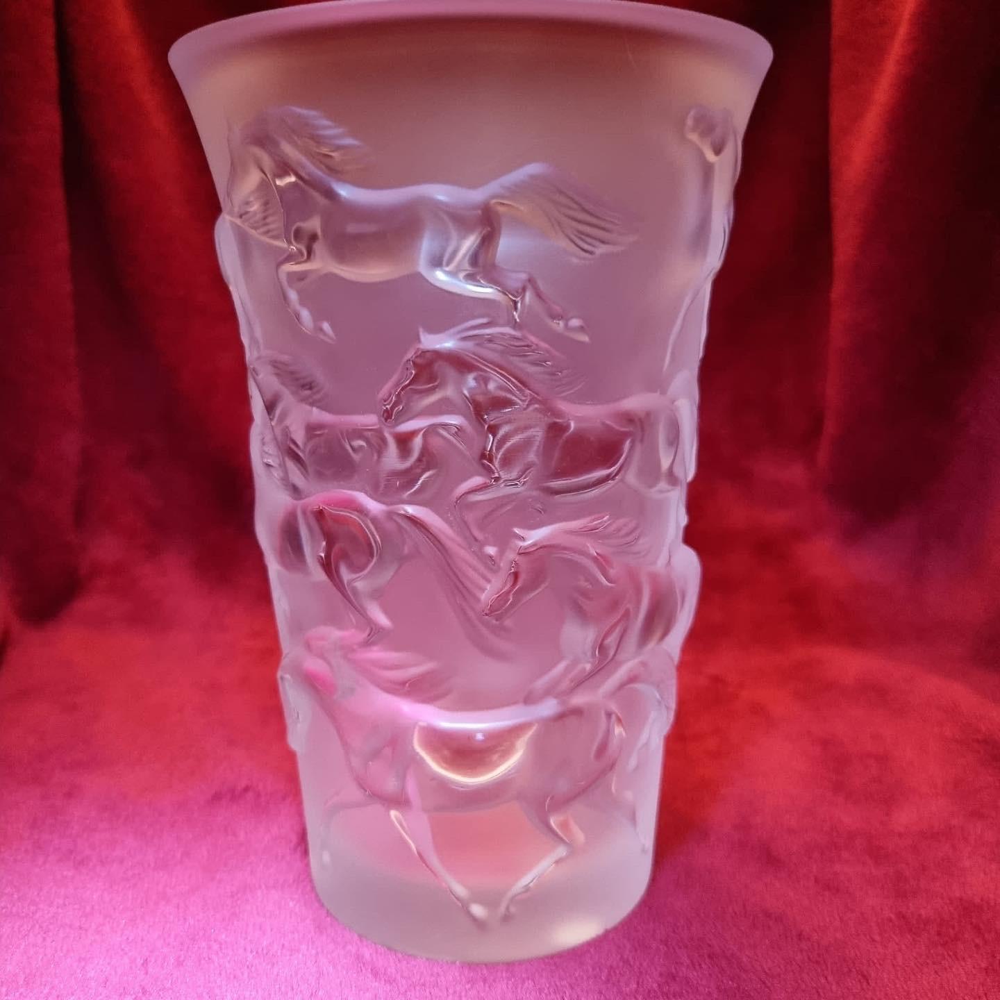Lalique "Mustang" Galloping Horse Vase with Original Label