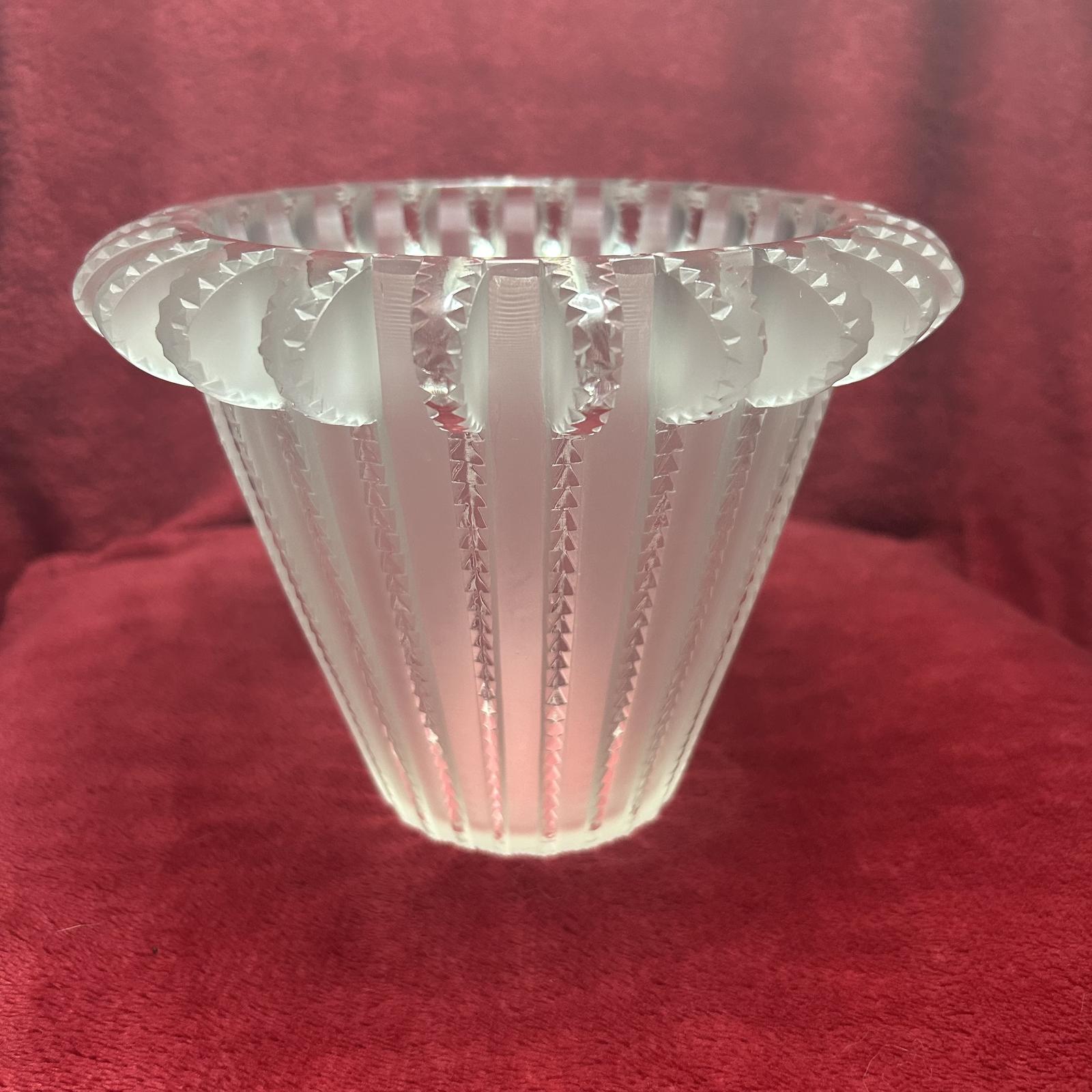 Lalique "Royat" Pattern Clear & Frosted Glass Vase Designed by Rene Lalique 1936