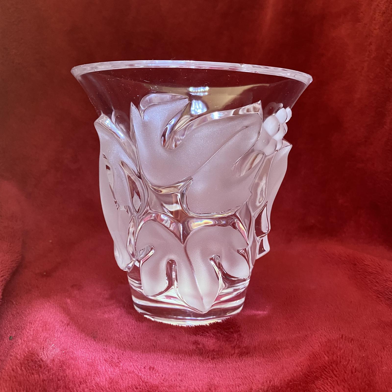 Lalique "Saumur" Leaf and Berry Pattern Clear and Frosted Glass Heavy Vase