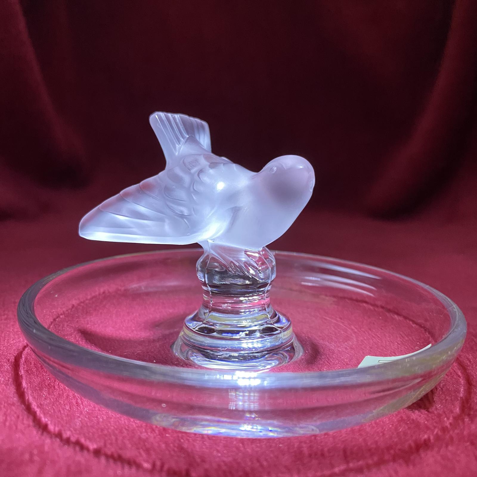 Lalique "Sparrow" Ring Dish in Clear & Frosted Glass with Original Label
