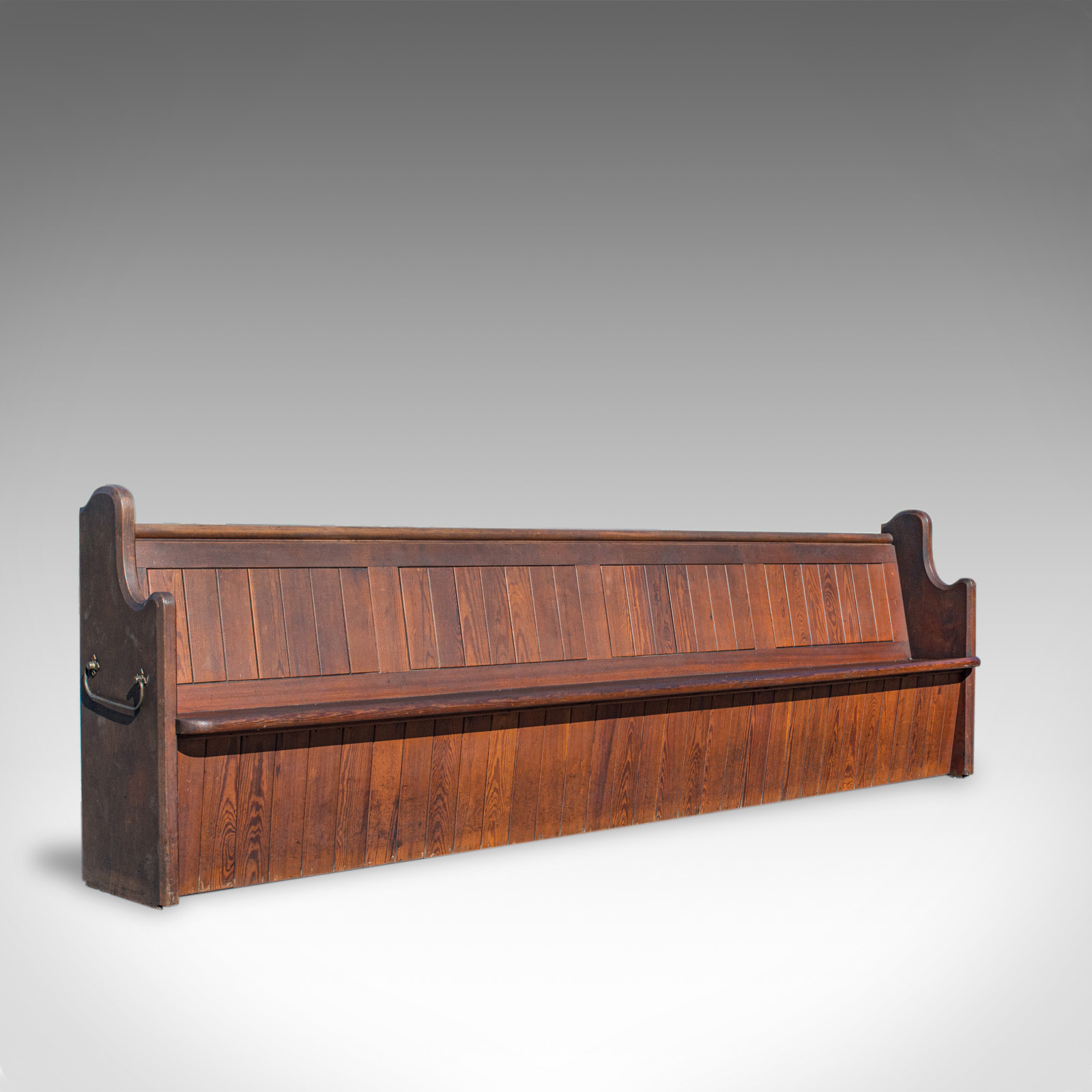 Large 10 Foot Antique Pew, English, Pitch Pine, Bench, Seat, 7-8, Victorian
