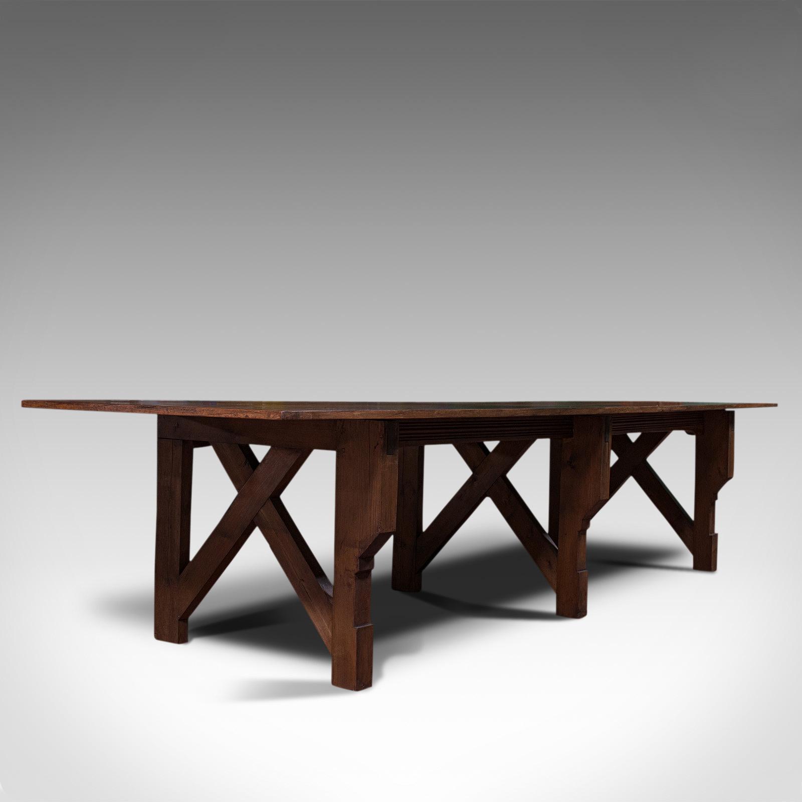 Large 12' Antique Kitchen Table, English, Pine, Industrial, Victorian, 1900 (1 of 12)