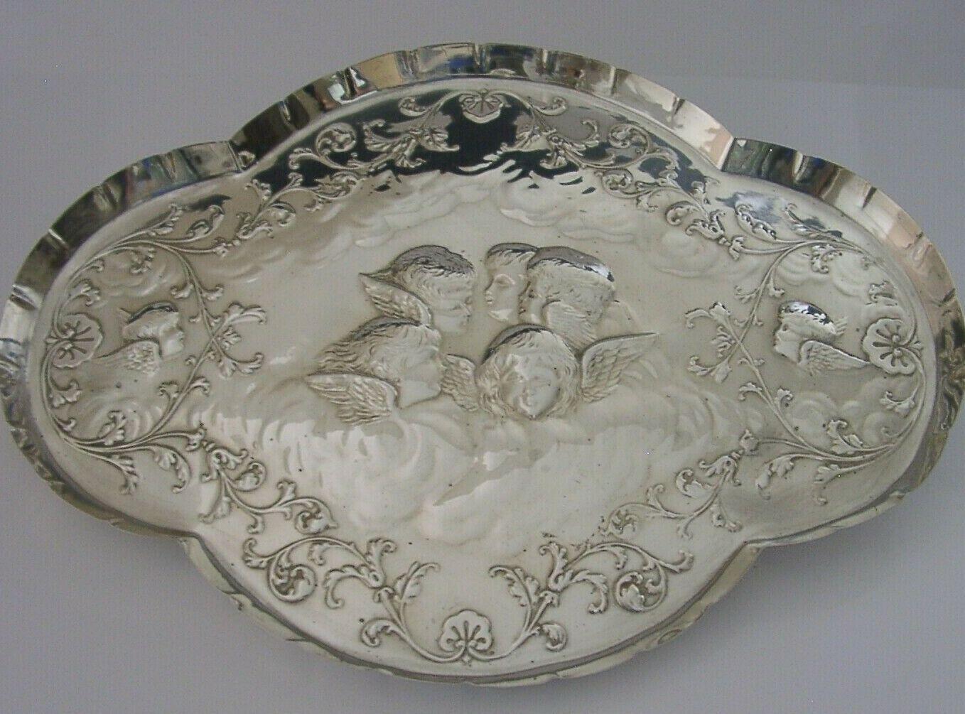 Large 12" Cherub Angels Solid Sterling Silver Dressing Table Tray 1906