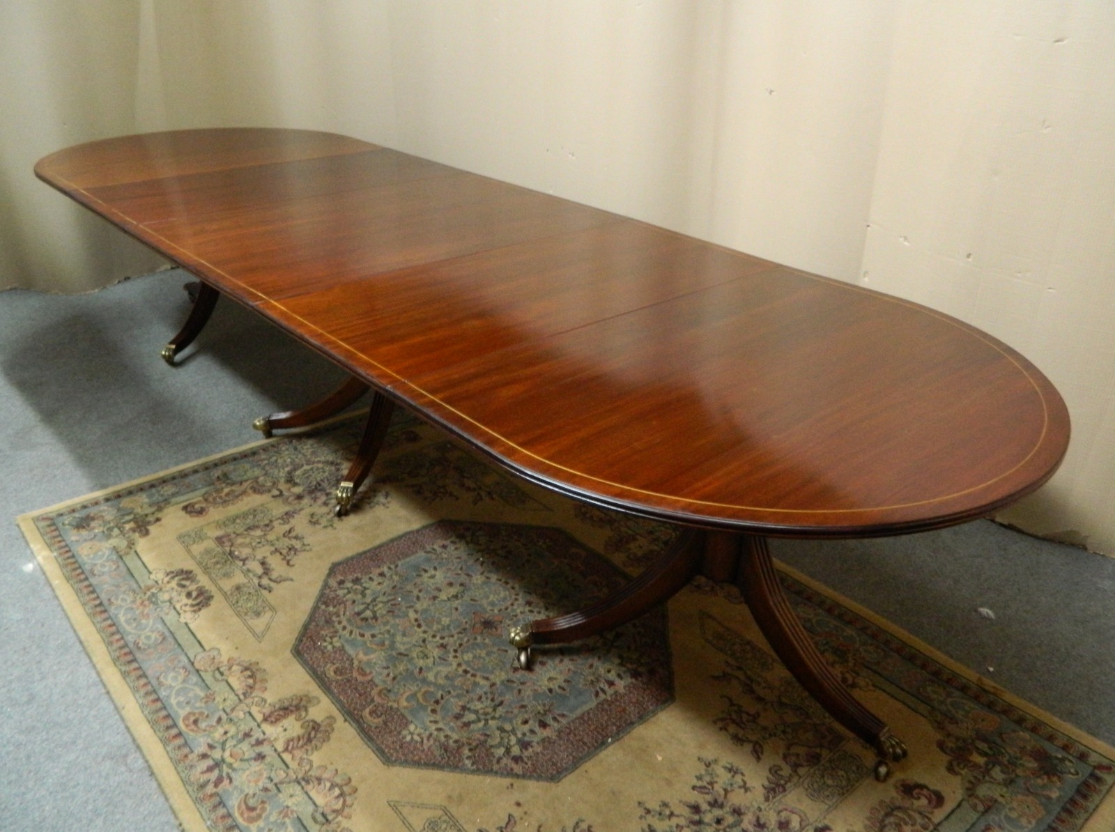 Large 12' Mahogany Triple Pillar Dining Table