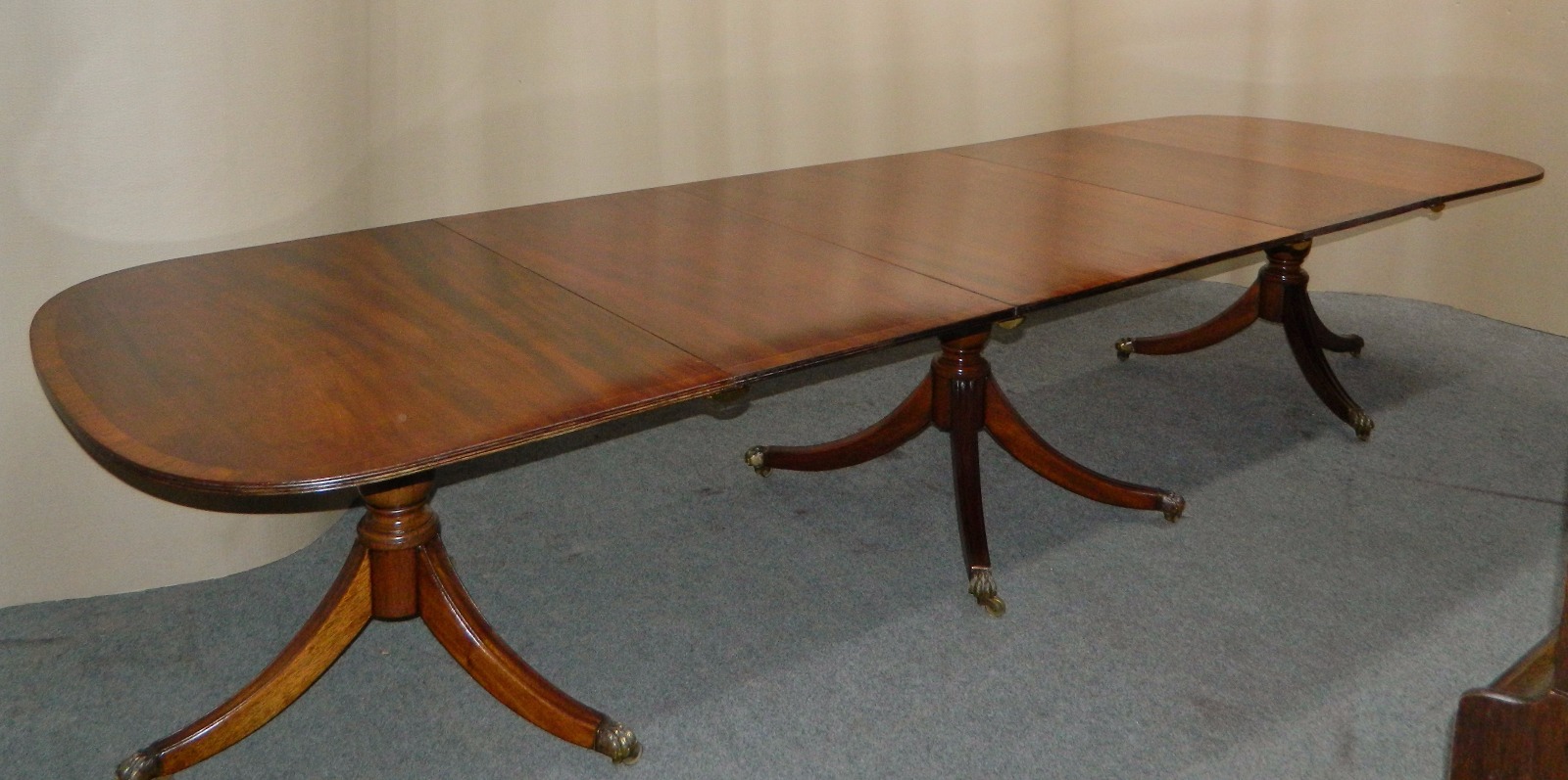 Large 12.5' Mahogany Triple Pedestal Dining Table