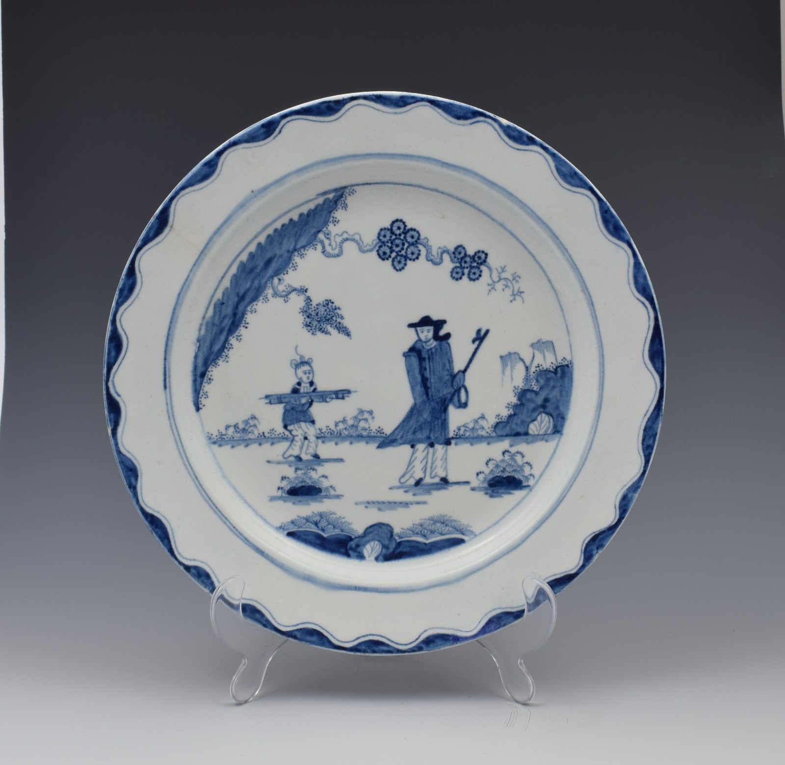 Large 18th Century Bow Porcelain Plate the Golfer & Caddy Pattern (1 of 1)
