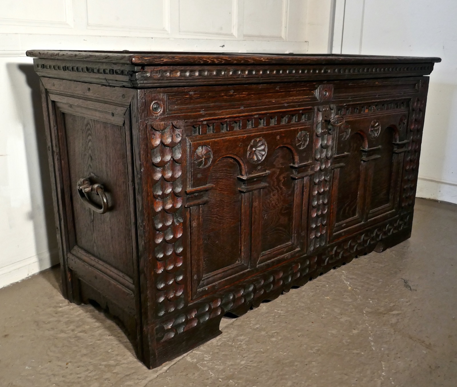 Large 18th Century Carved Oak Cassone, Marriage Chest or Carved Coffer