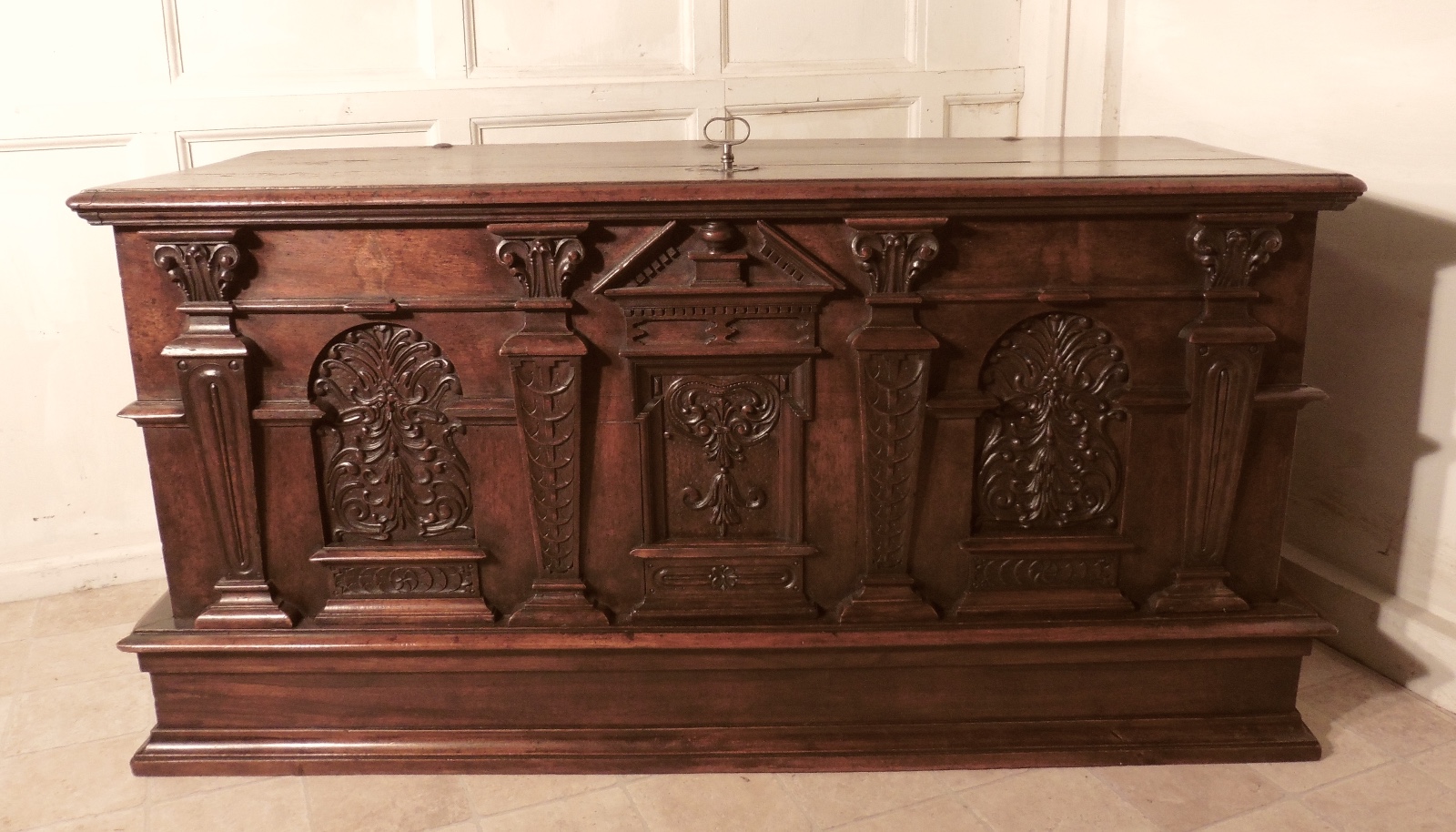 Large 18th Century Carved Walnut & Oak Cassone, Marriage Chest / Carved Coffer