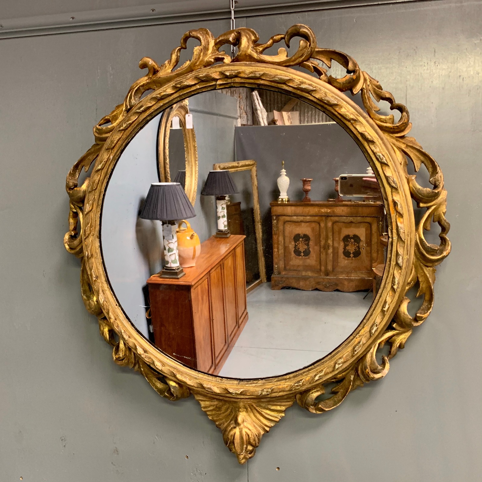 Large 18th Century Italian Carved Giltwood Round Mirror (1 of 9)