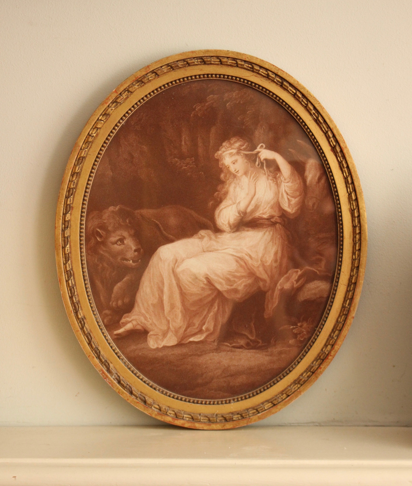 Large 18th Century Sepia Mezzotint, Thomas Burke, Per Angelica Kauffman, Una & the Lion