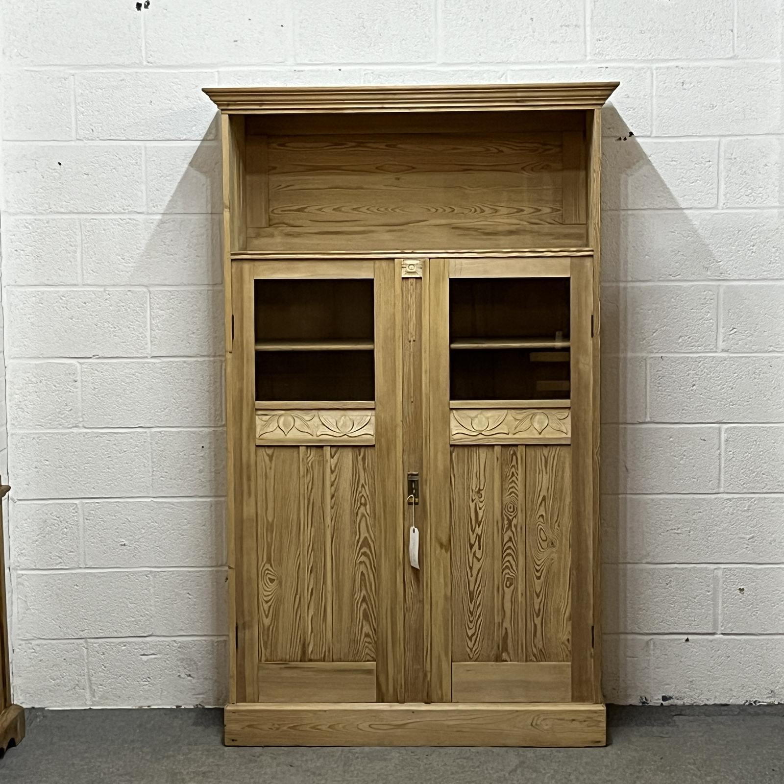 Large 1930s East German Partly Glazed Pine Display Cabinet