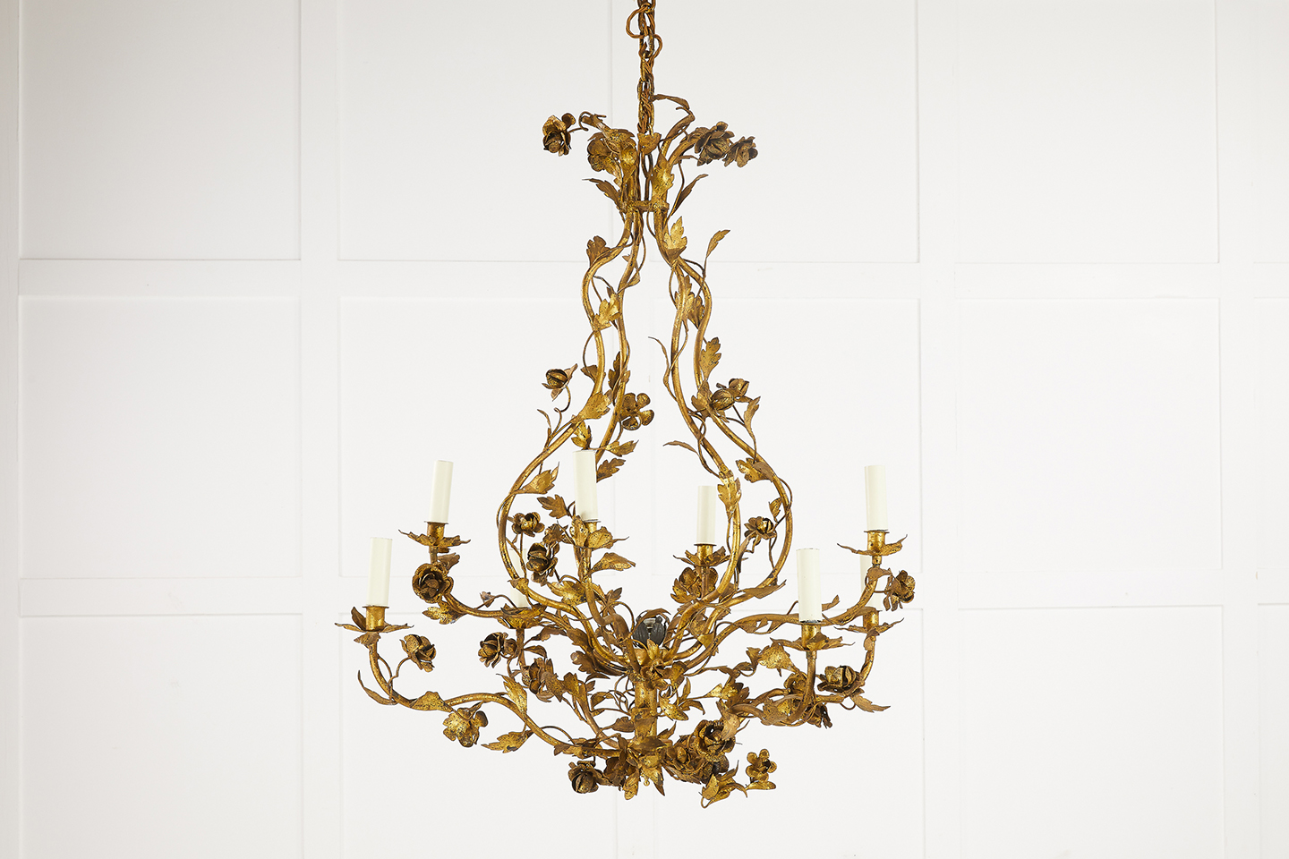 Large 1960s Spanish Gilt & Metal Chandelier (1 of 4)